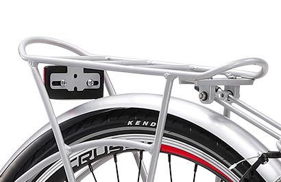 Součástí výbavy e-kola jsou i přední a zadní osvětlení, stojánek, nosič a blatníky.